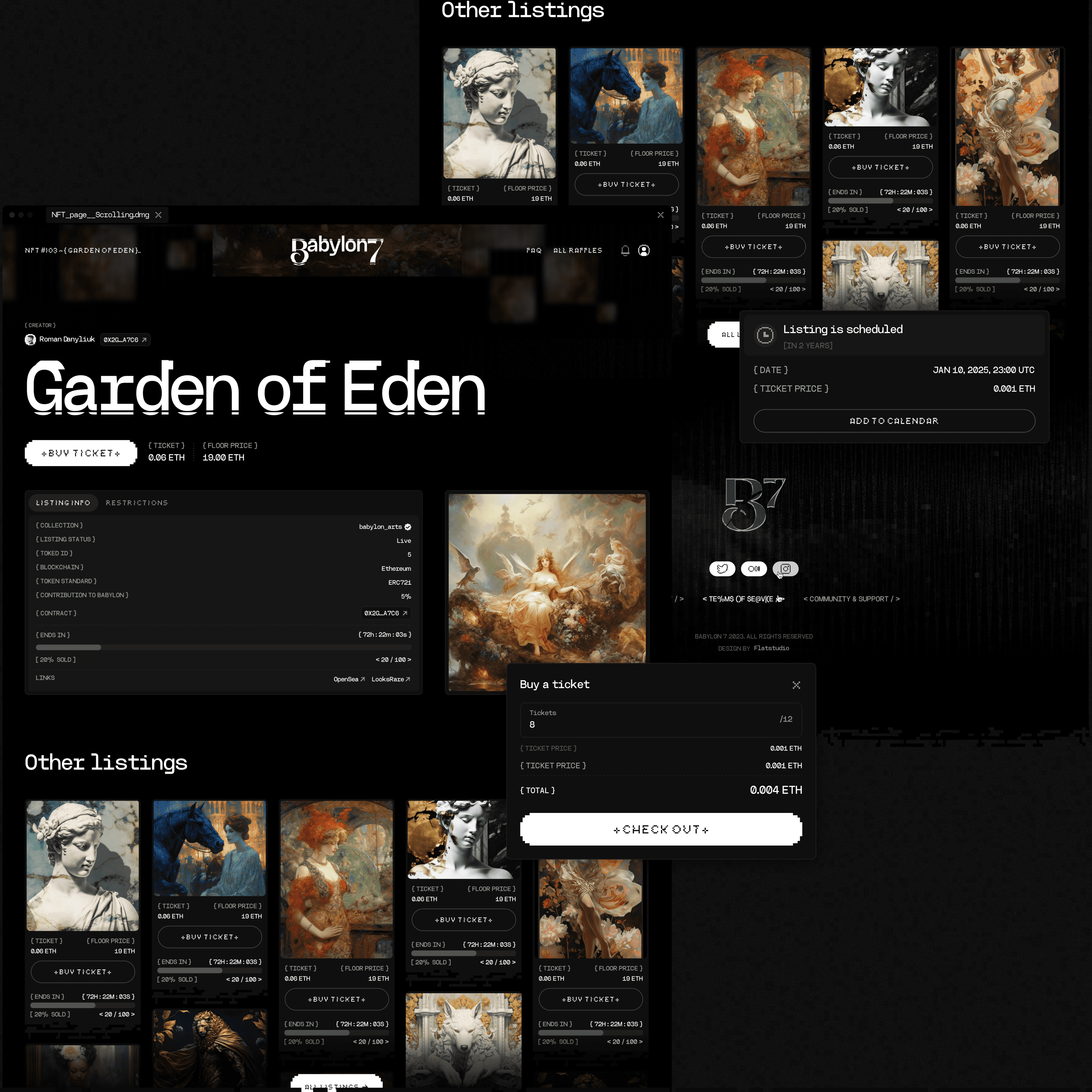 Design a clear and scalable NFT marketplace that connects digital art with real economic value. The goal was to define the product structure and user experience for Babylon 7, making NFT trading understandable for newcomers while preserving flexibility and depth for experienced users and collectors.