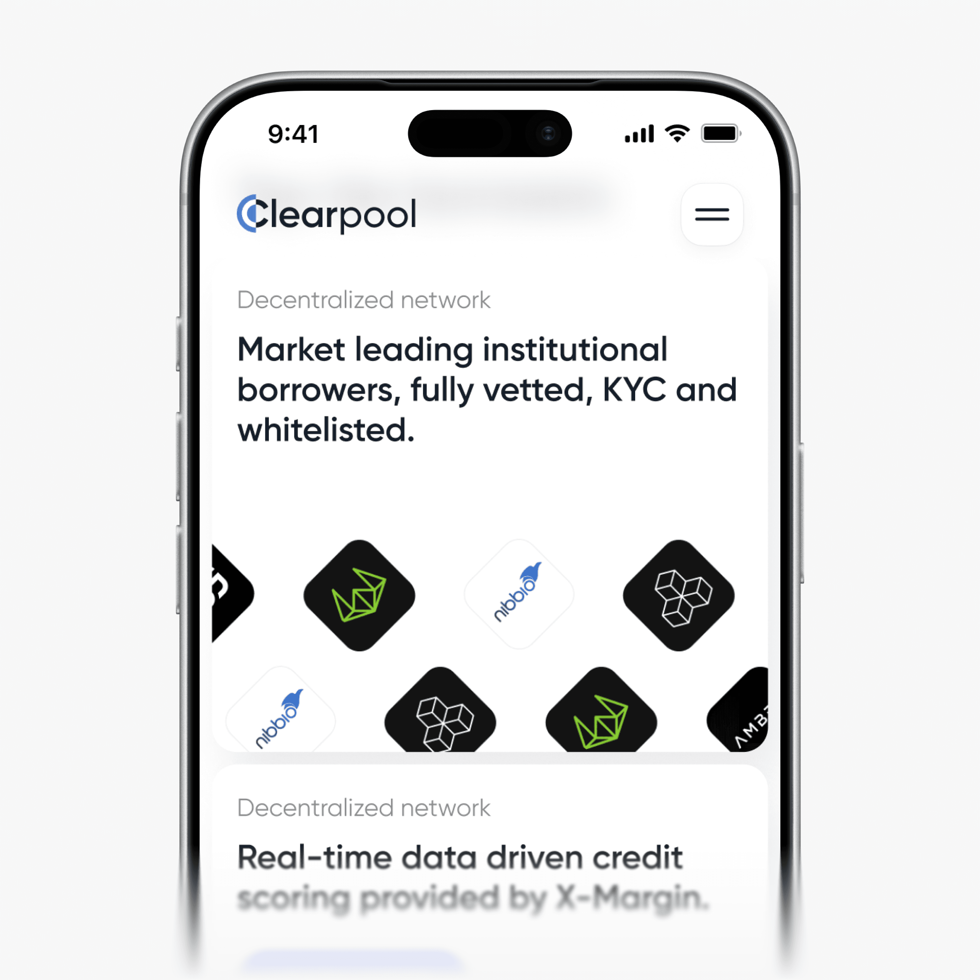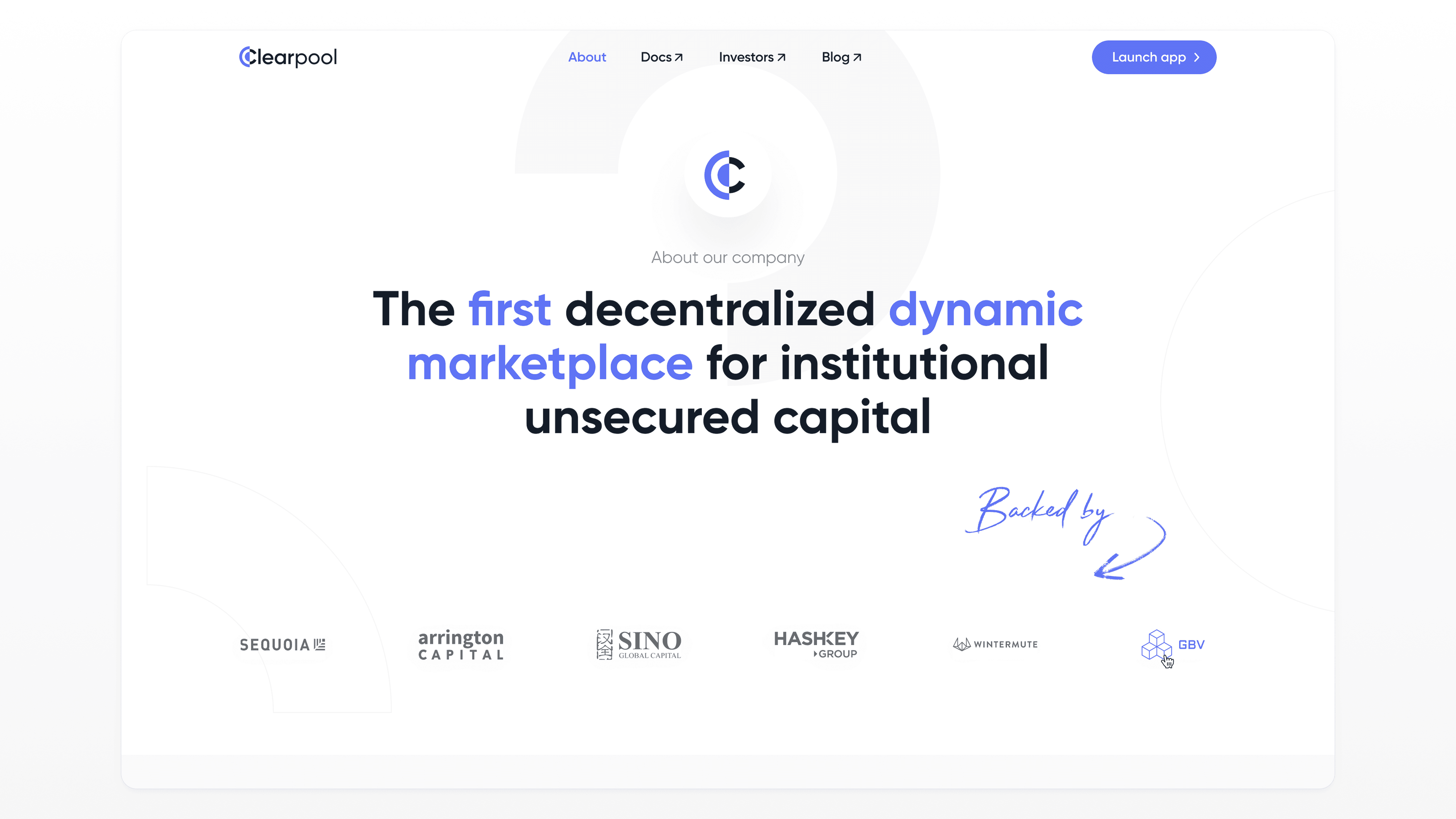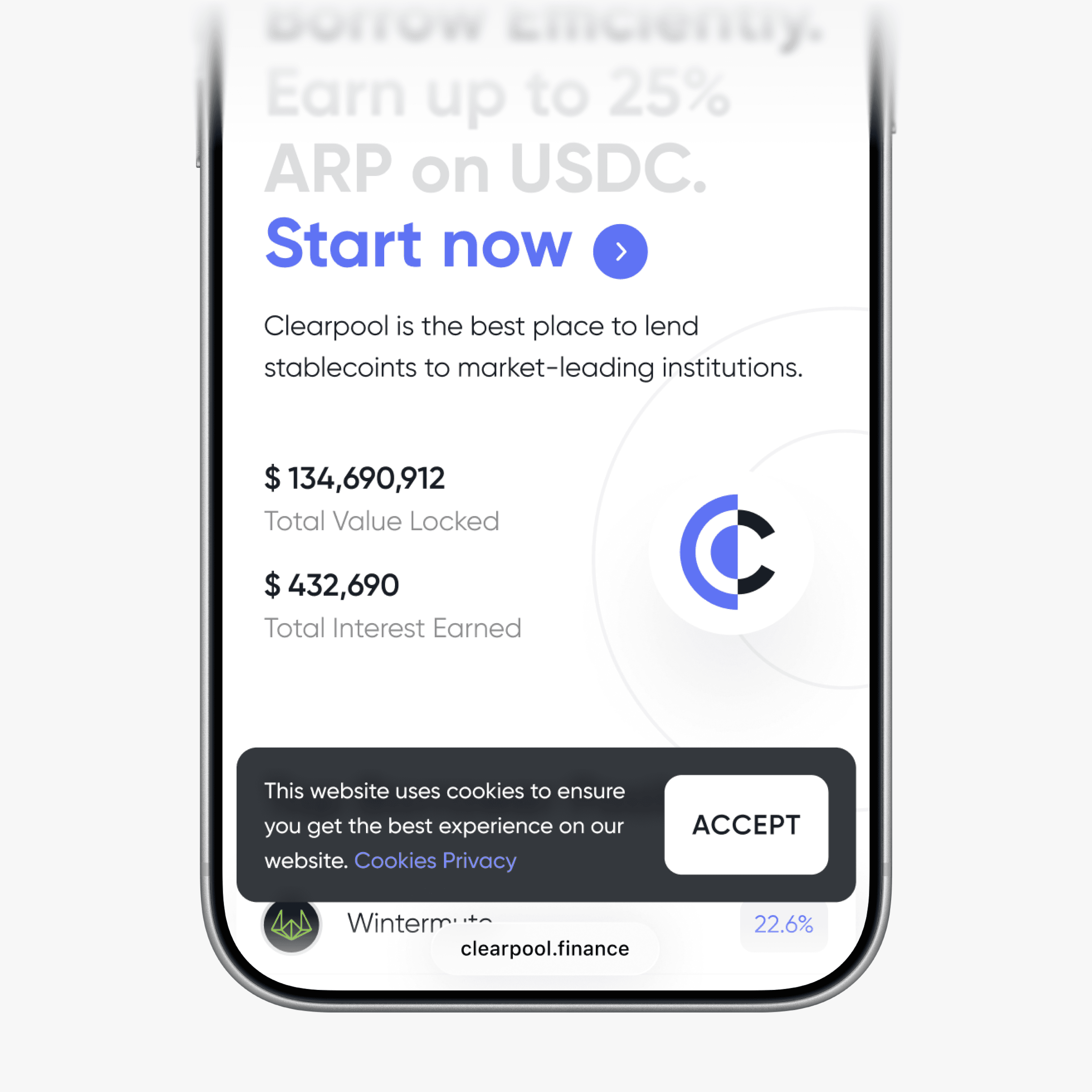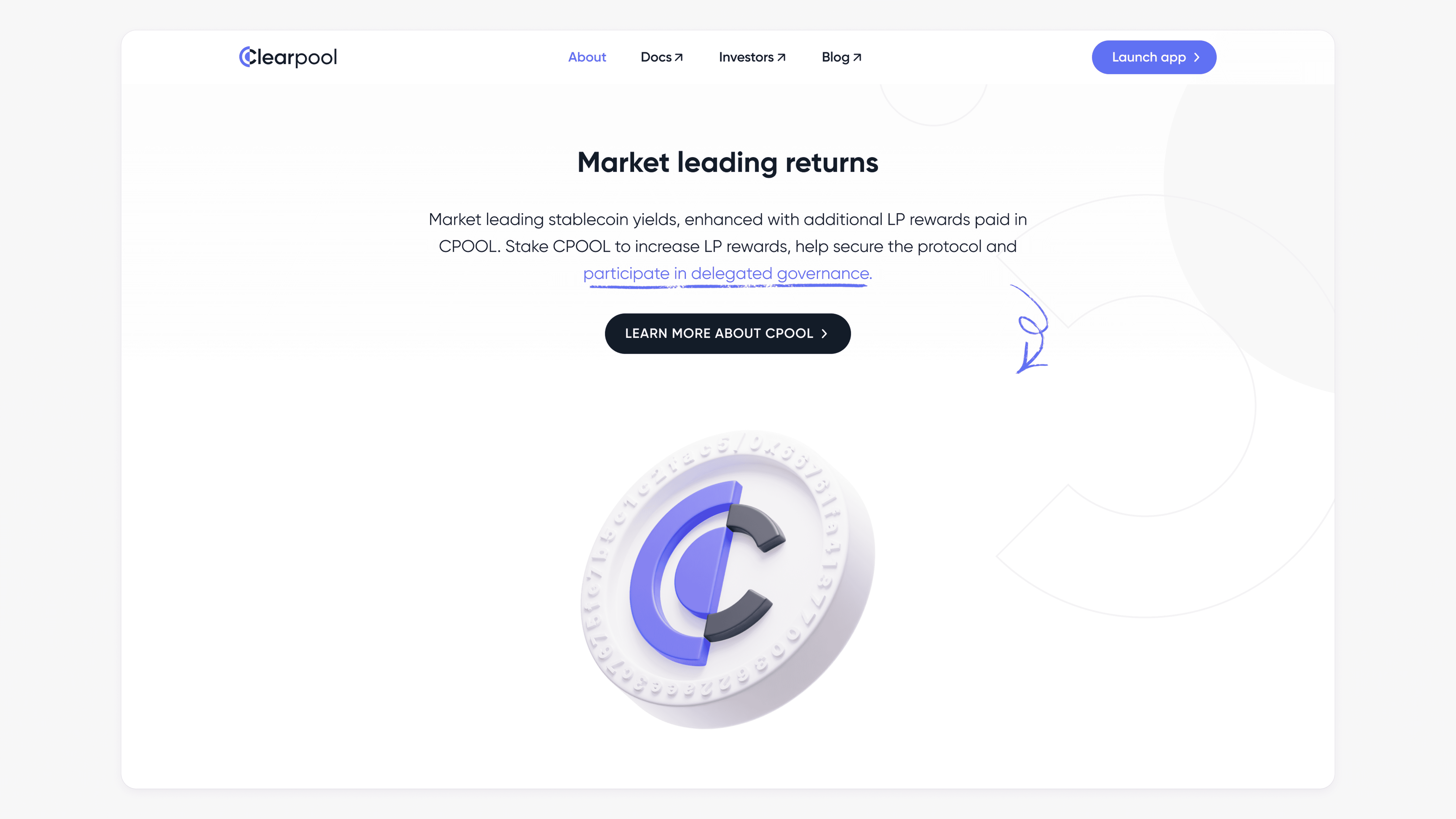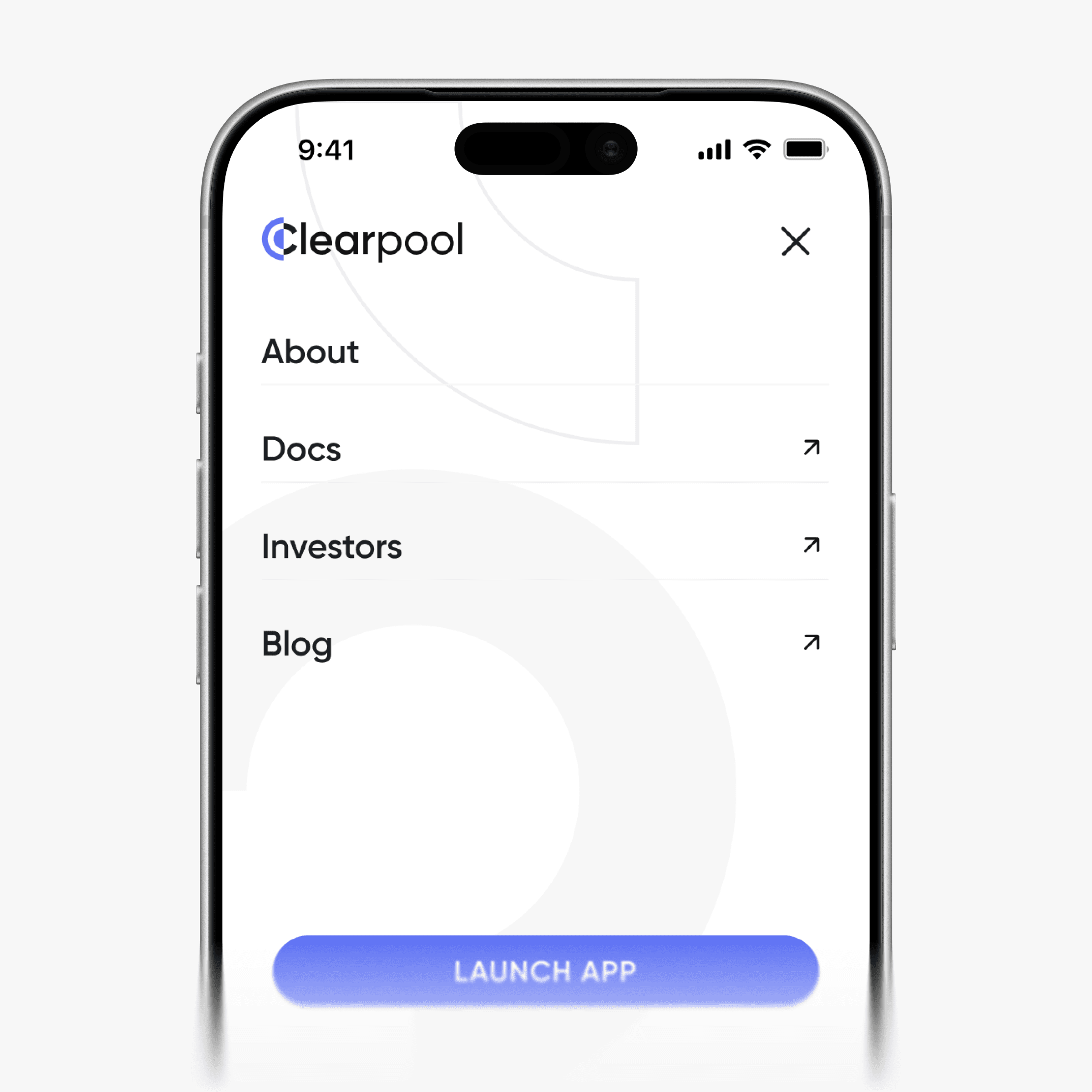 Create a clear and trustworthy entry point to the Clearpool protocol by designing a landing page that introduces the project, explains its core mechanics and value proposition, and guides users toward launching the Web3 application.