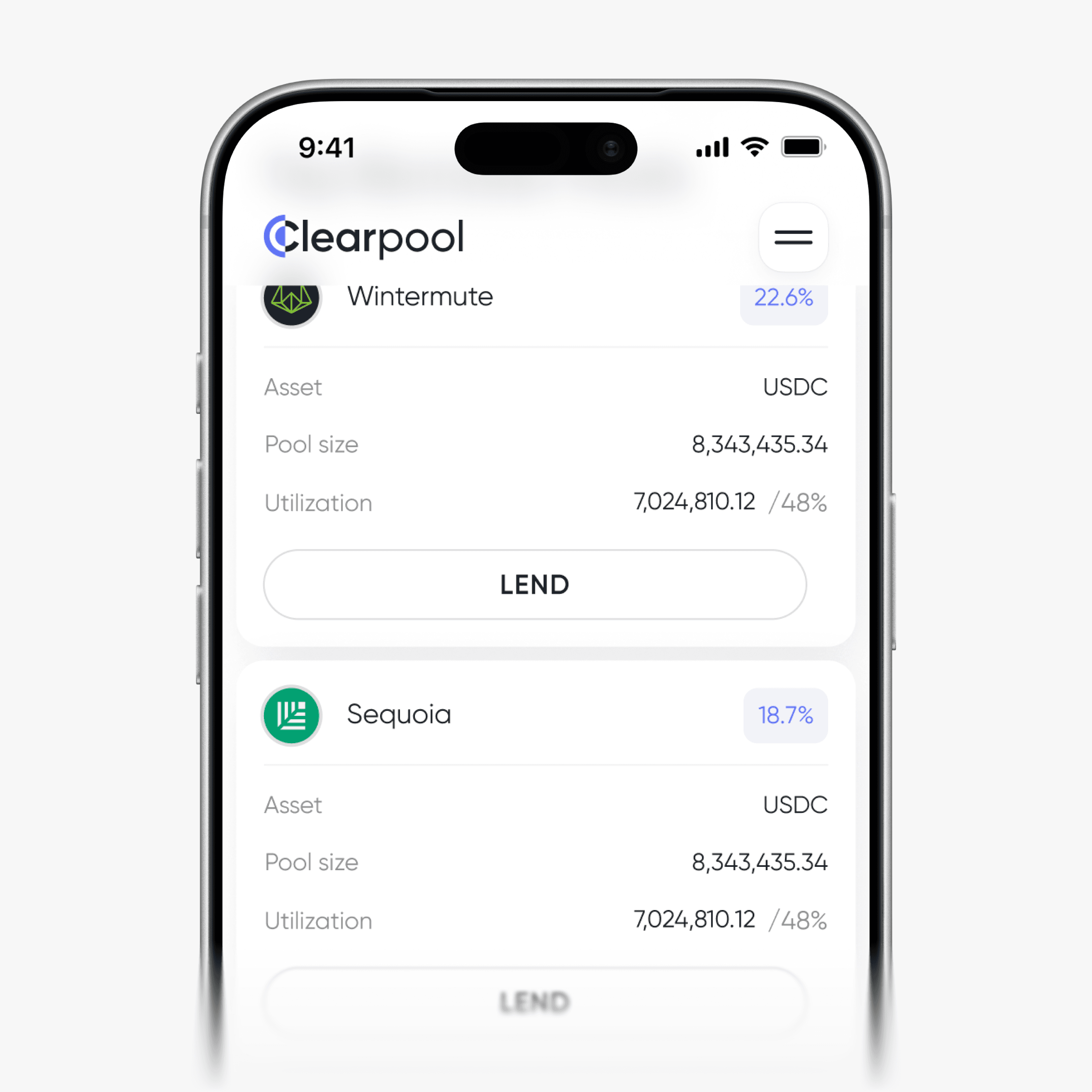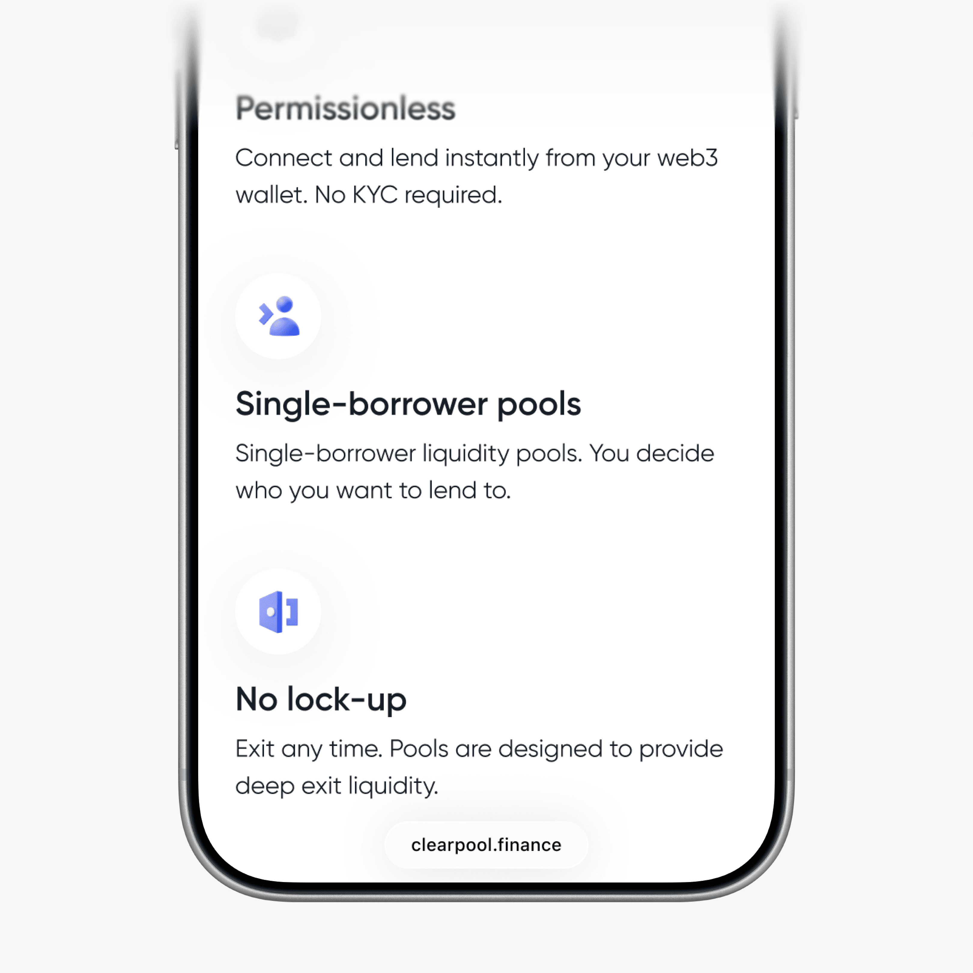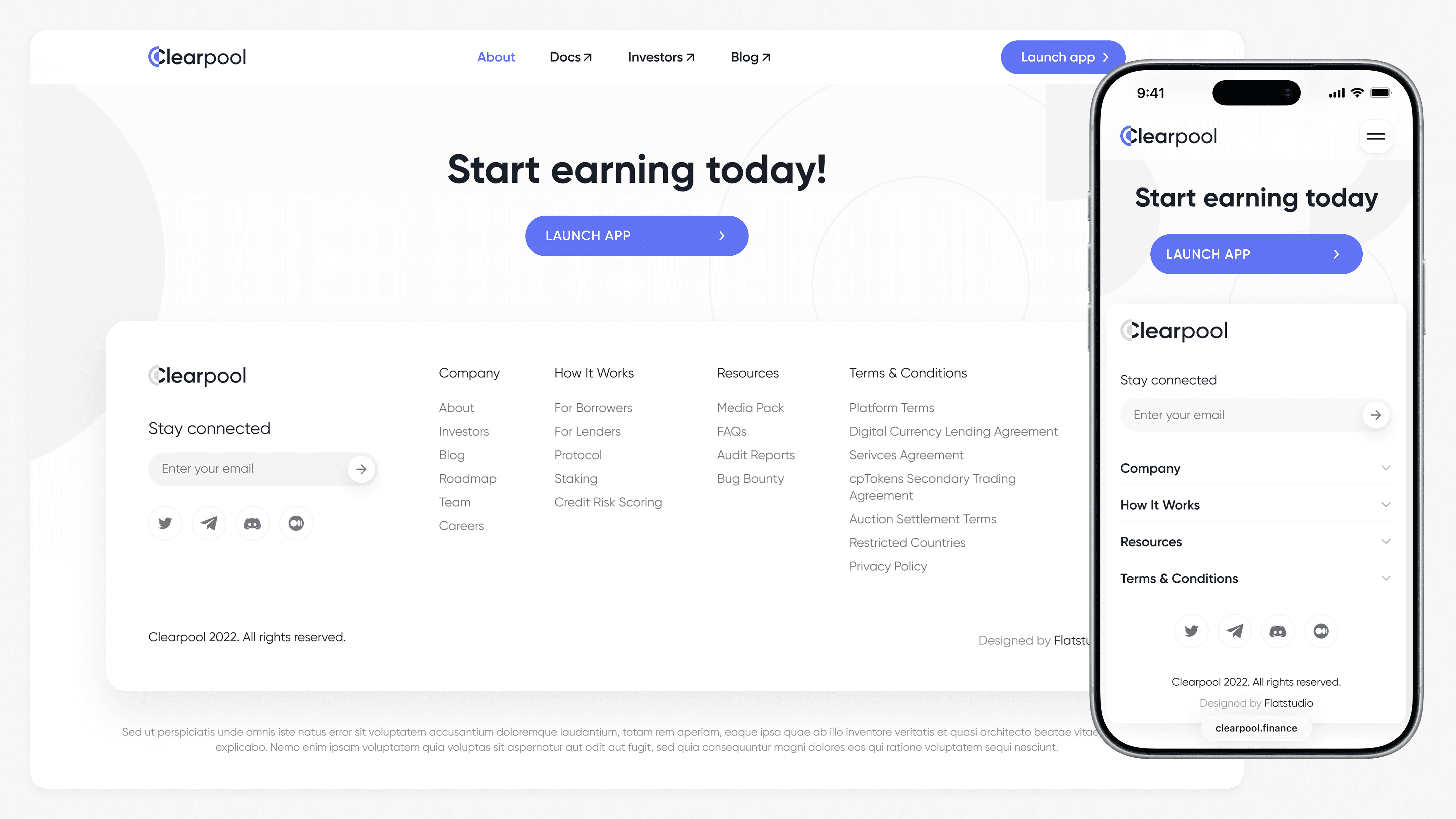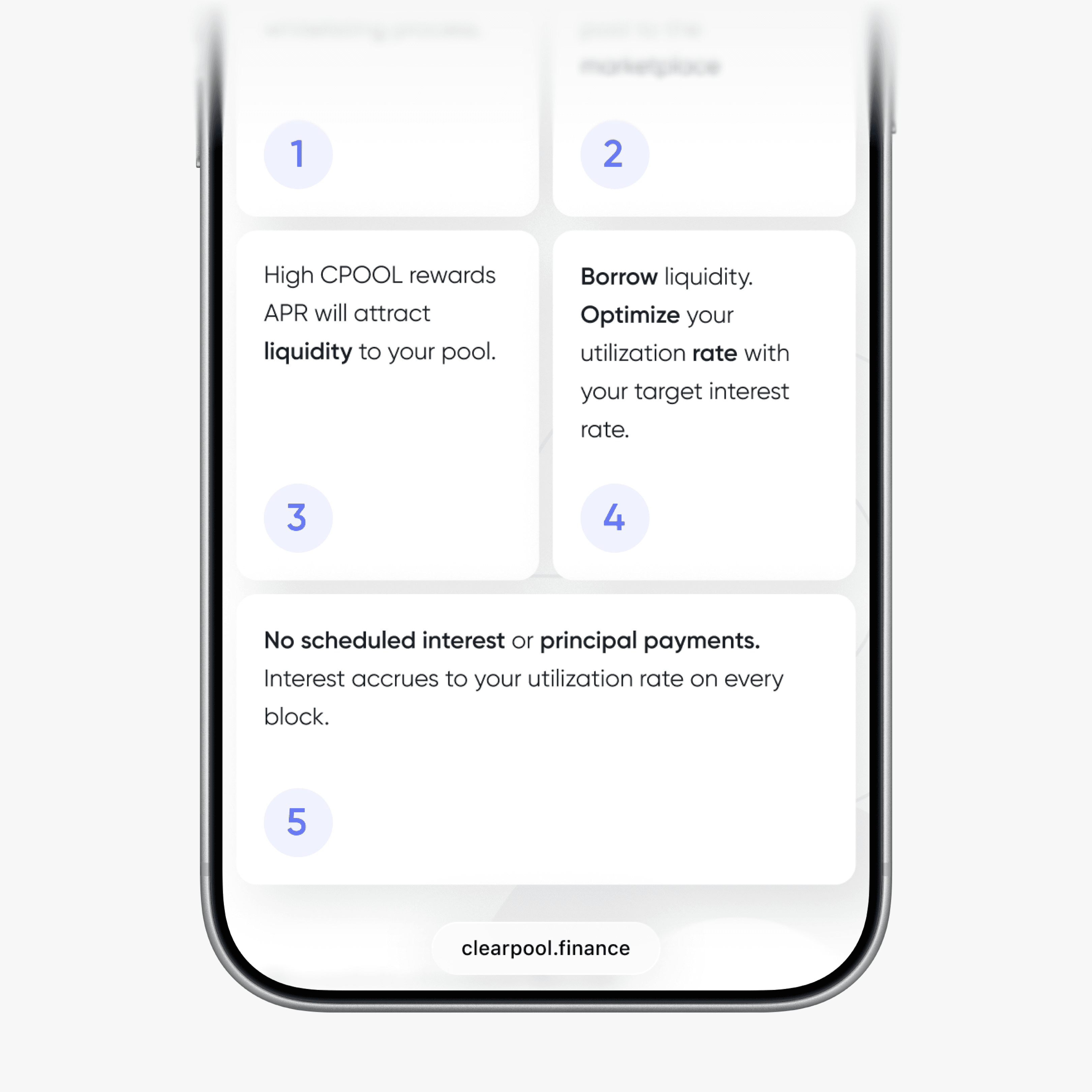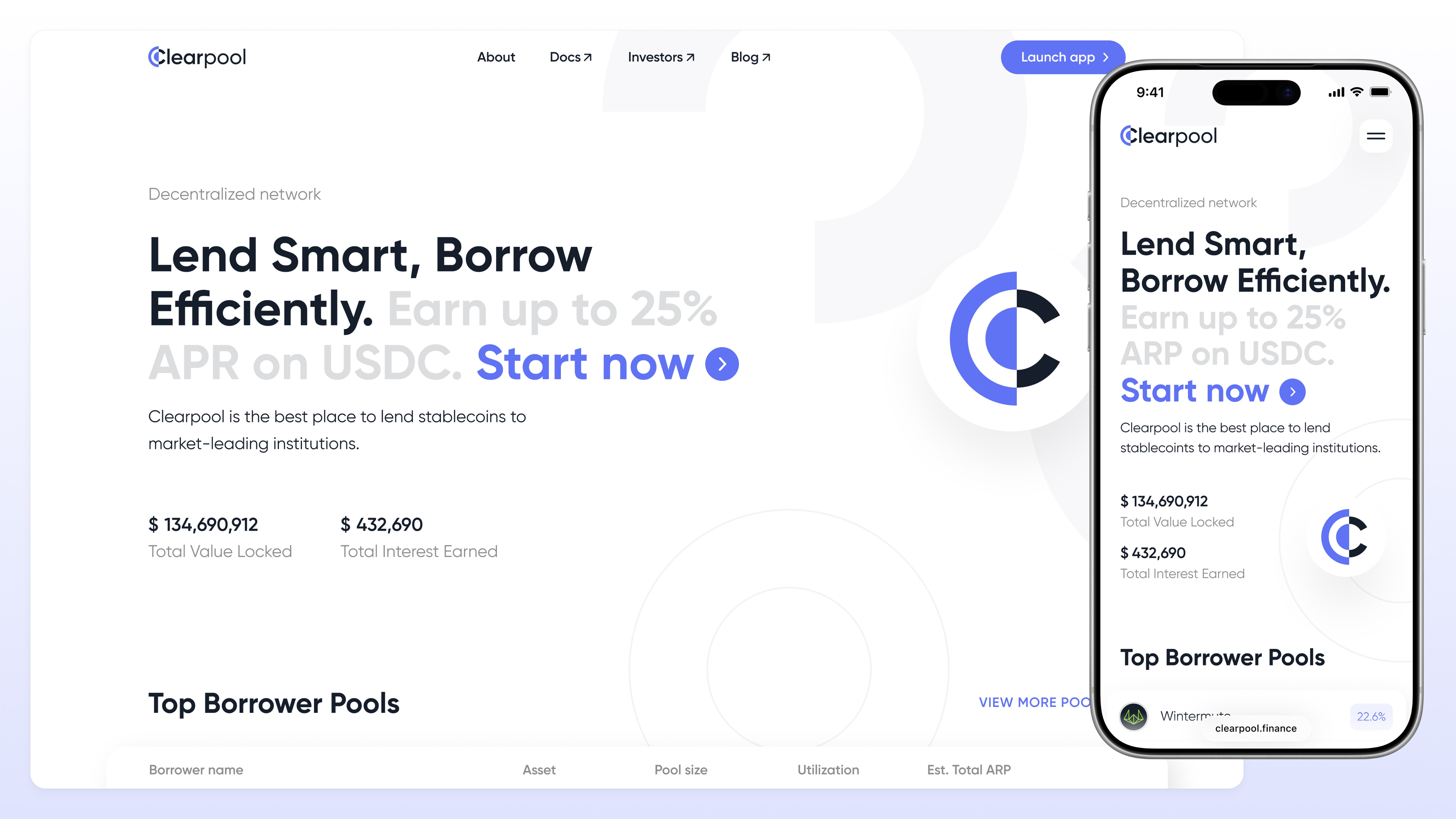 Create a clear and trustworthy entry point to the Clearpool protocol by designing a landing page that introduces the project, explains its core mechanics and value proposition, and guides users toward launching the Web3 application.