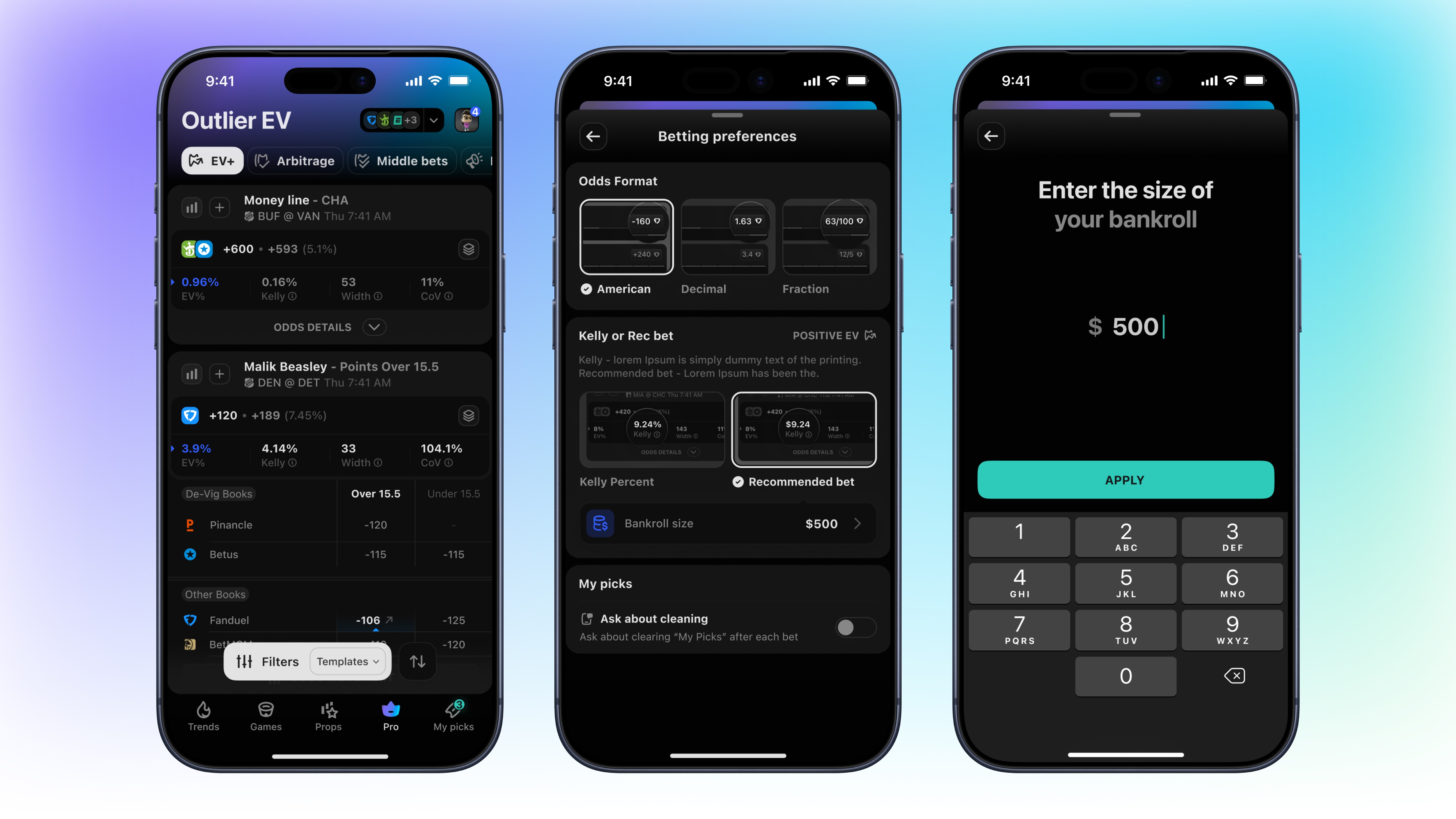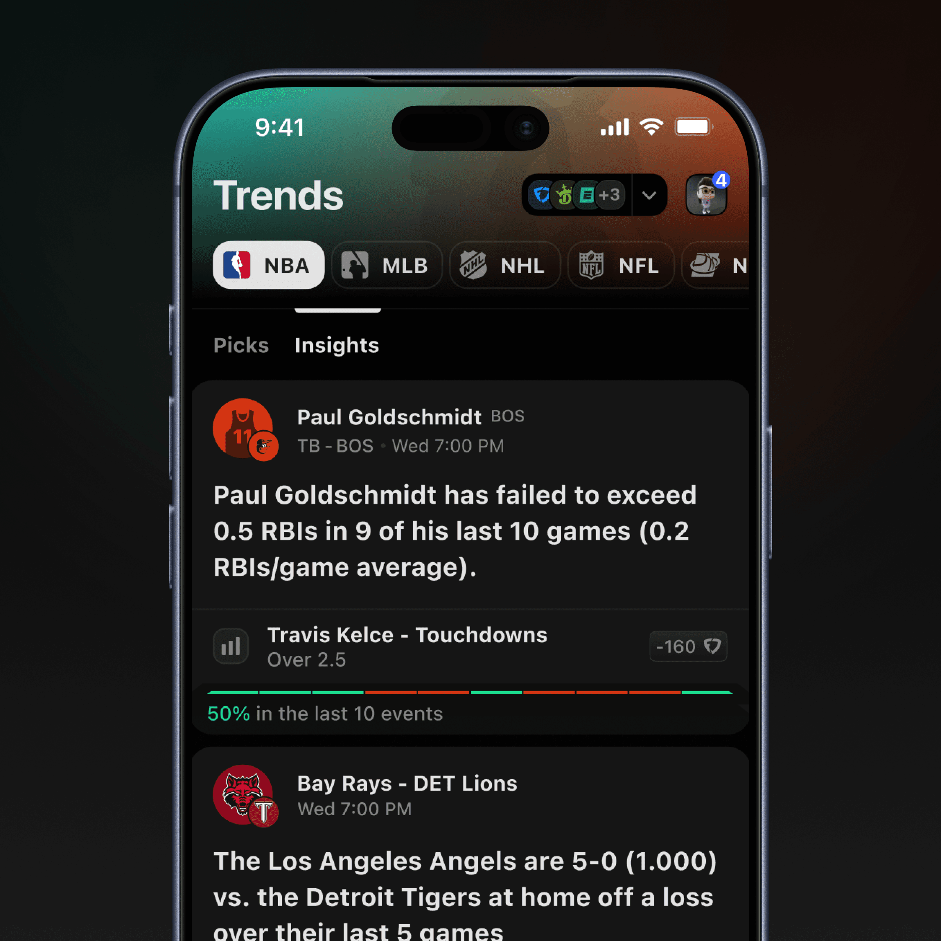 iOS sports betting platform for player analytics, line movement & odds