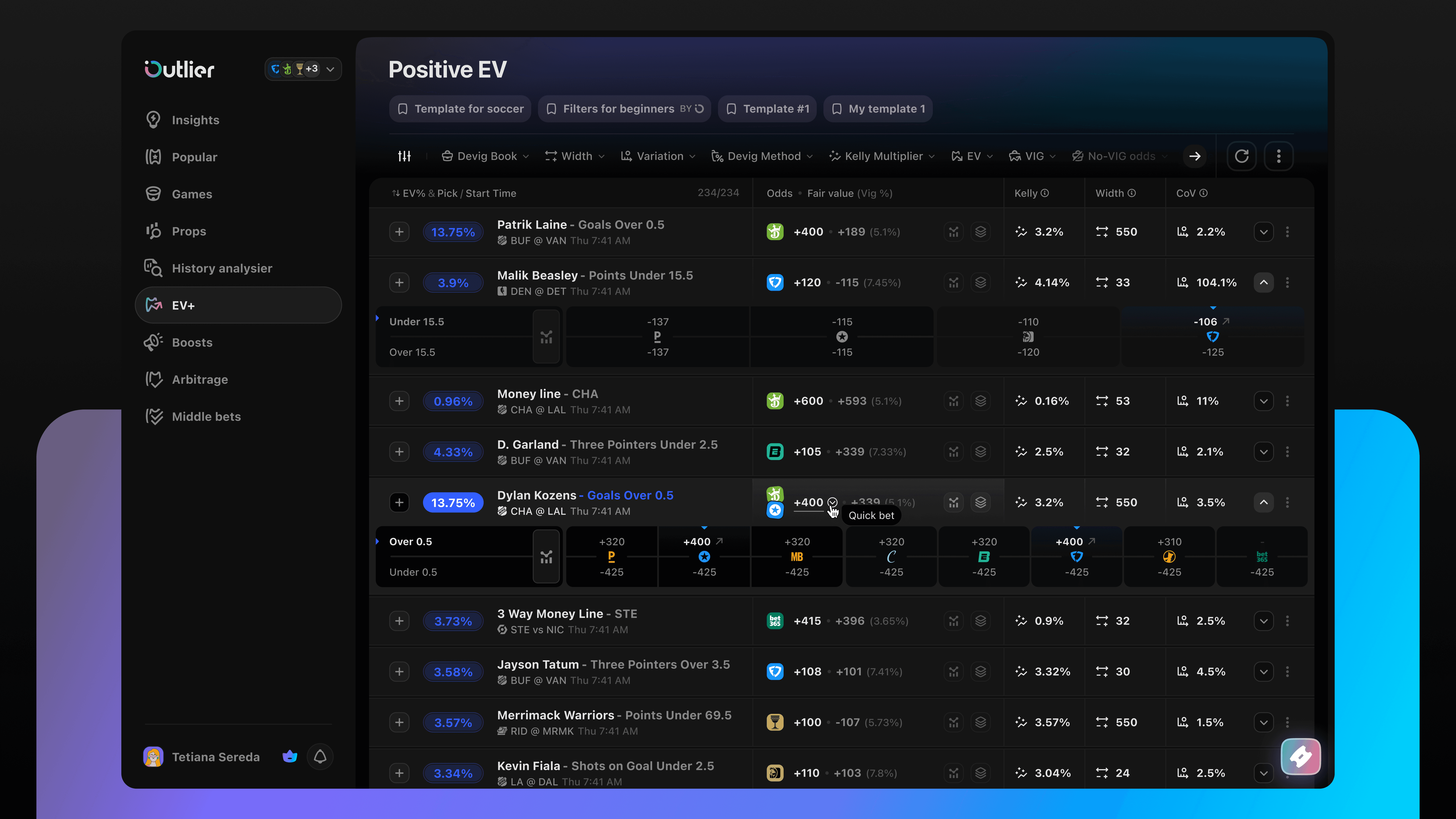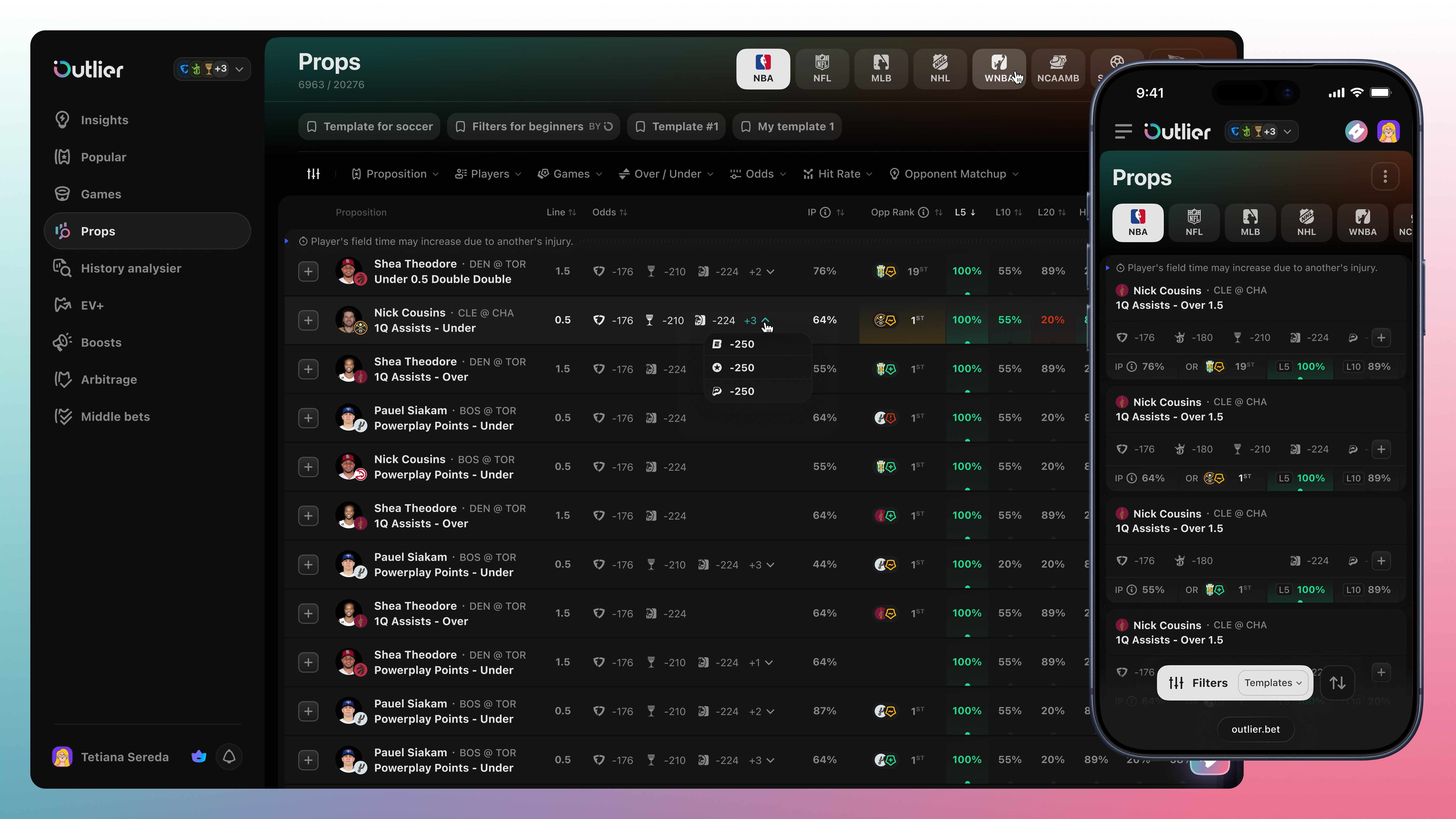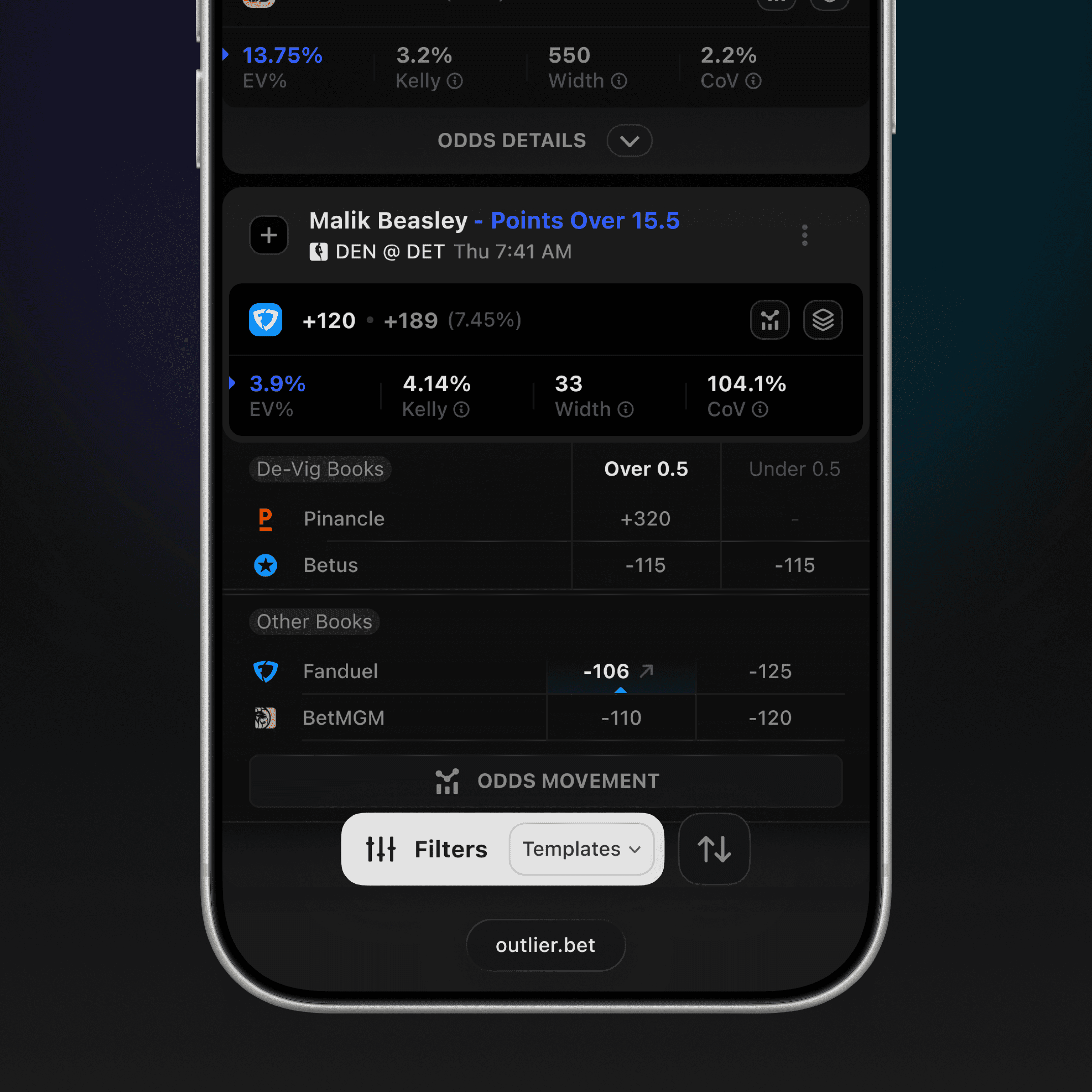 The main goal was to structure large volumes of betting data into a clear and usable product experience, making advanced analytics approachable without oversimplifying them. The work focused on turning player data, line movement, and odds comparison into familiar, easy-to-navigate betting flows.