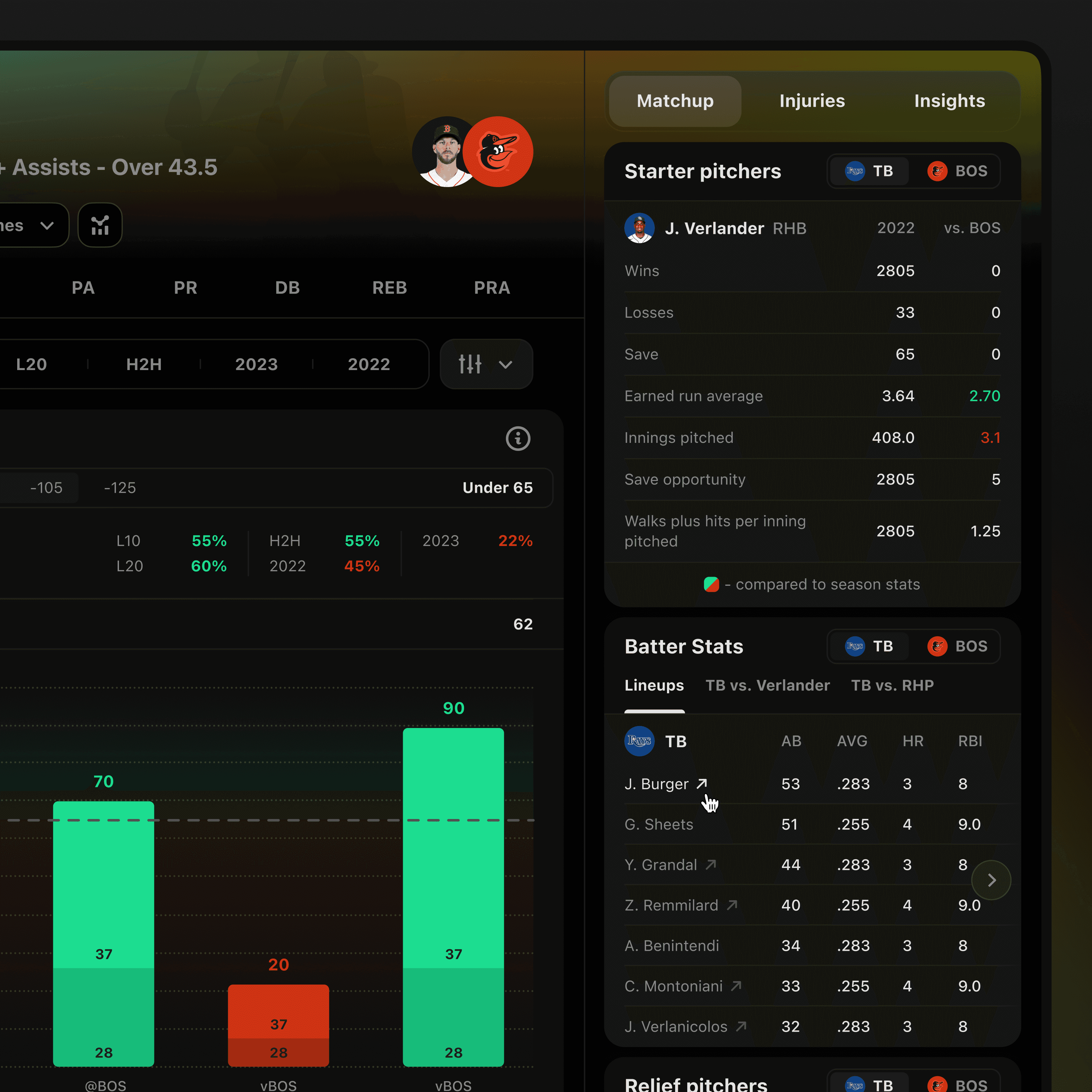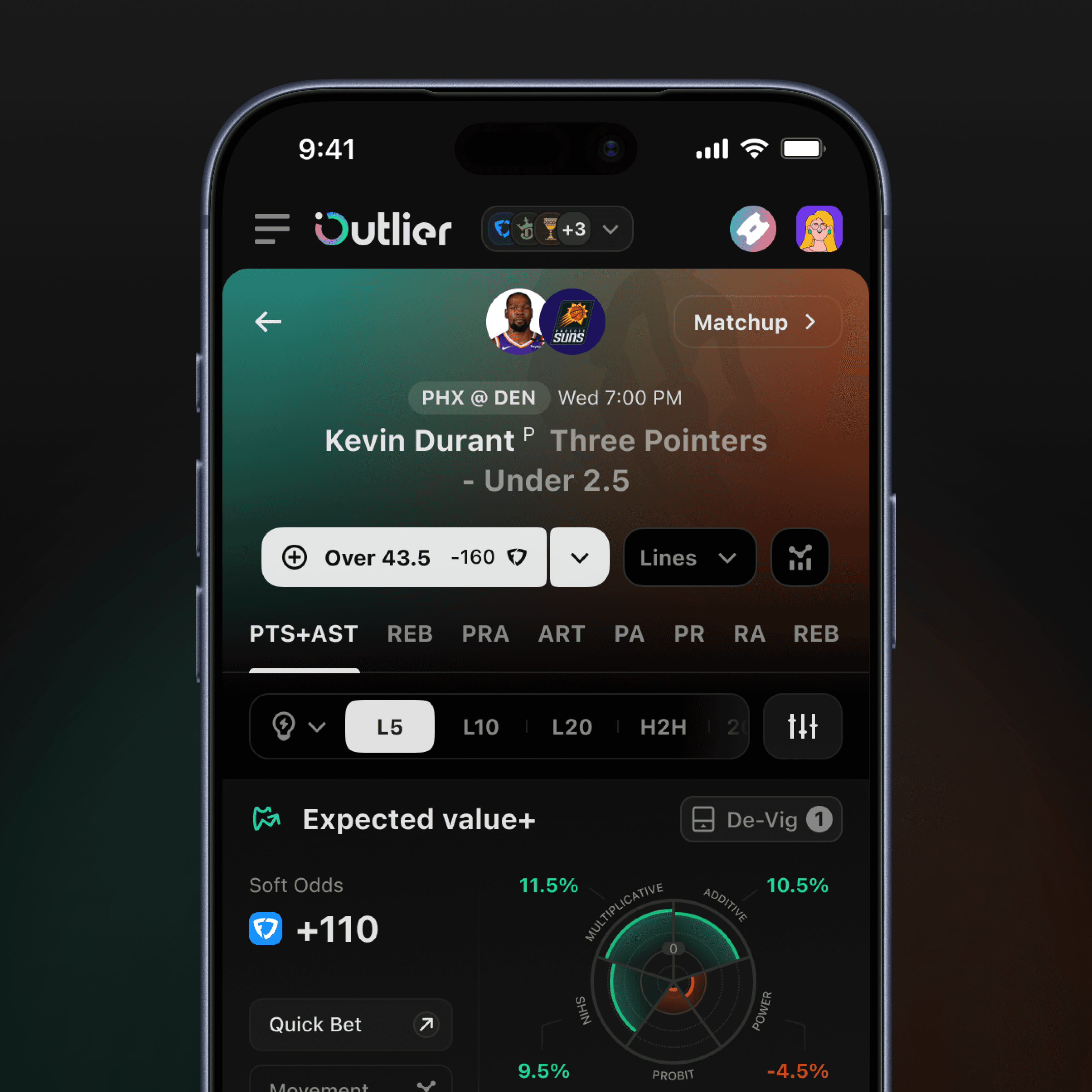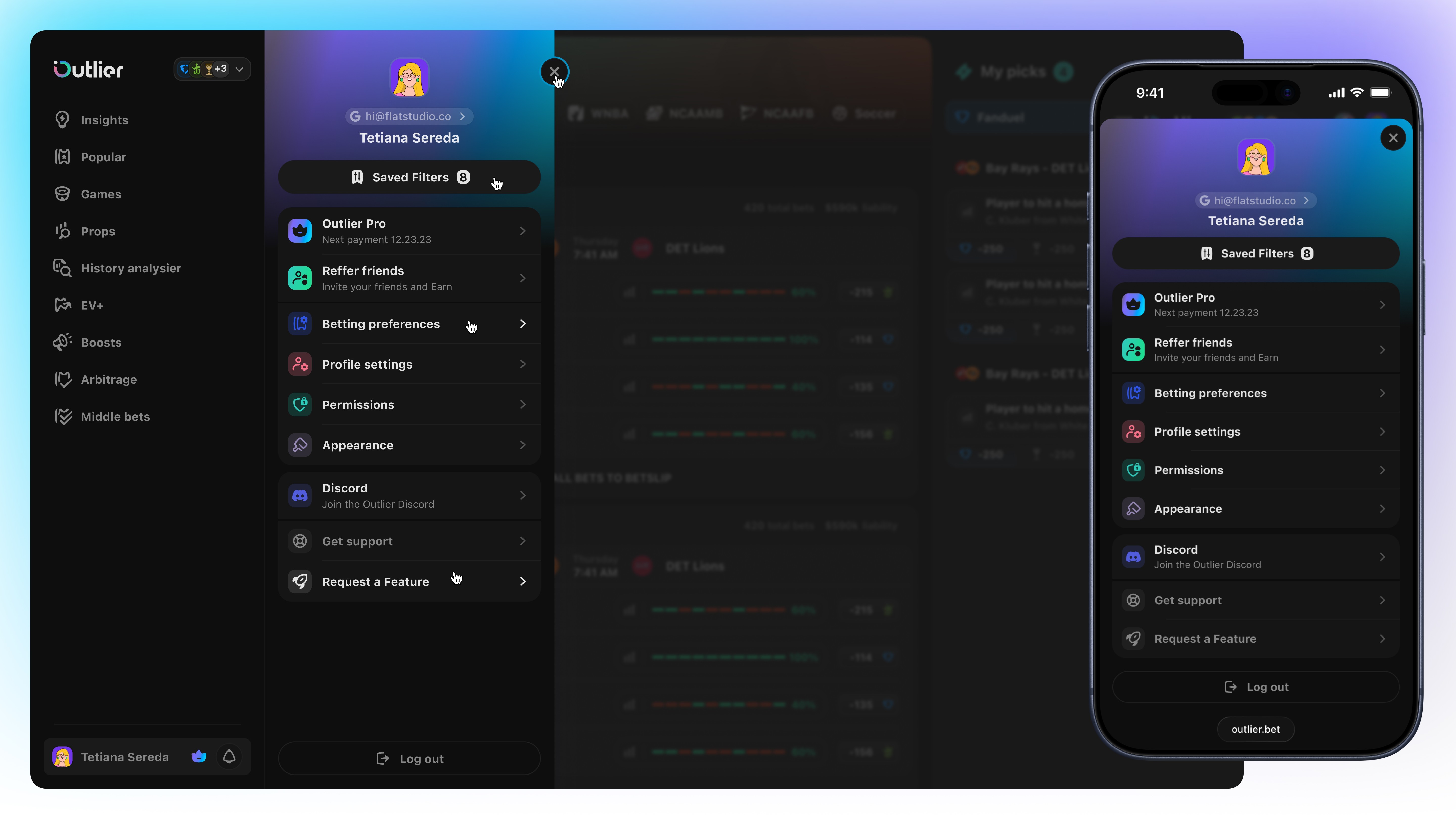 The main goal was to structure large volumes of betting data into a clear and usable product experience, making advanced analytics approachable without oversimplifying them. The work focused on turning player data, line movement, and odds comparison into familiar, easy-to-navigate betting flows.